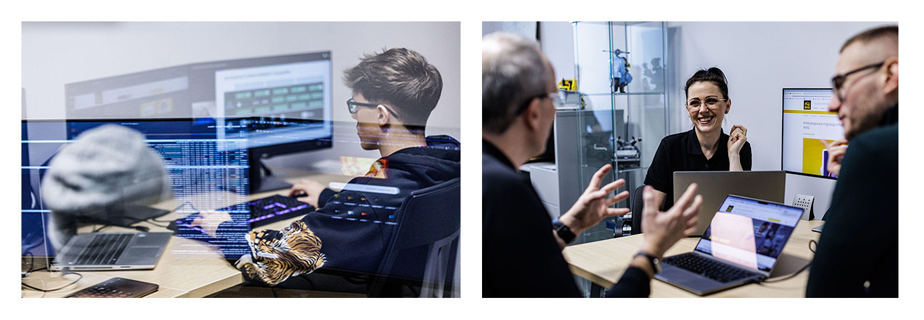 W firmie funkcjonuje wewnętrzny system szkoleniowy, bierzemy udział w bootcampach oraz tematycznych szkoleniach, dedykowanych dla partnerów AWS, Azure i GCP. Nasi pracownicy mają również dostęp do platform szkoleniowych, udostępnianych przez dostawców chmurowych oraz serwisów edukacyjnych w rodzaju A Cloud Guru, Whizlabs czy Udemy.